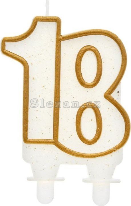 Svíčka narozeninová - číslice 18 - zlacená s glitry
