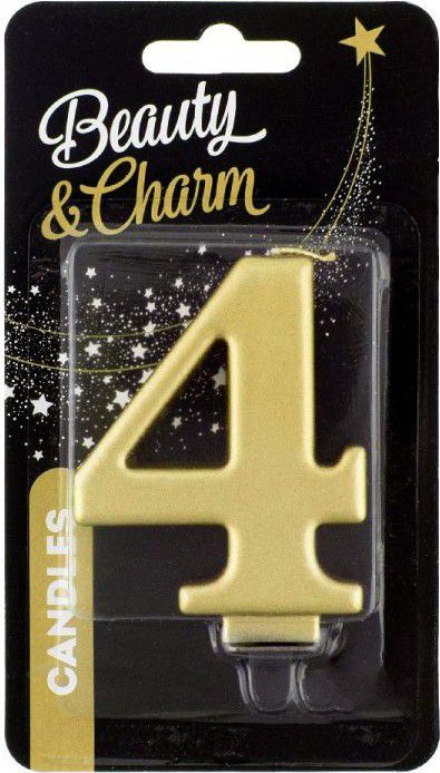 Popis Dortová svíčka číslice 4 metalická, zlatá 8cm