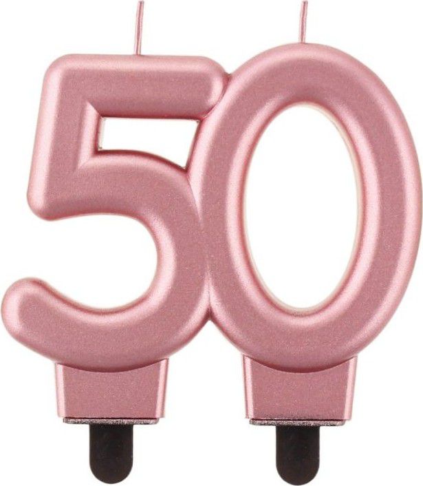 Dortová svíčka číslice 50 metalická, růžová 8cm
