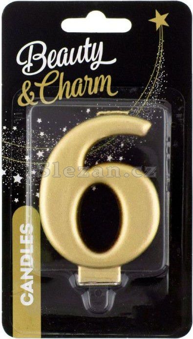 Dortová svíčka číslice 6 metalická, zlatá 8cm