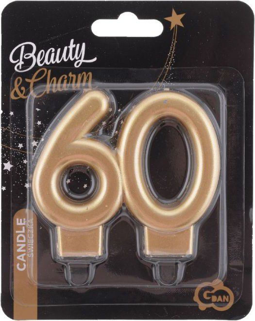 Svíčka narozeninová - číslice 60 - zlacená Rozměr: 8 cm Cena je uvedena za 1 ks.