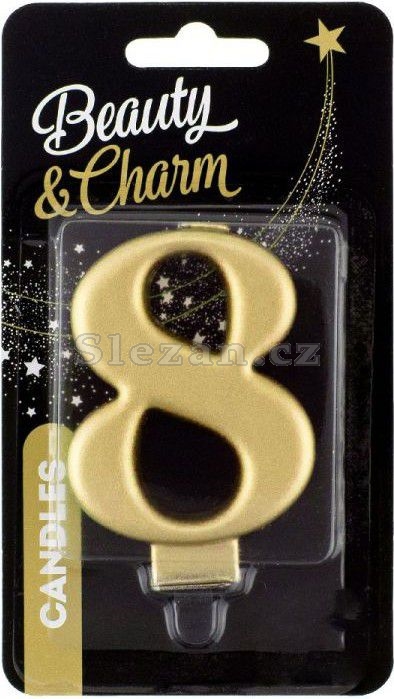 Dortová svíčka číslice 8 metalická, zlatá 8cm