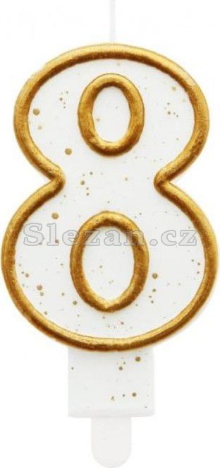 Svíčka narozeninová - číslice 8 - zlacená s glitry.