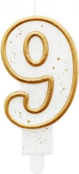 Svíčka narozeninová - číslice 9 - zlacená s glitry