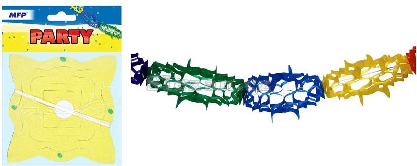 Papírová girlanda od společnosti MFP paper v různobarevném provedení s klasickými motivy - Girlandy jsou oblíbeným doplňkem pro výzdobu místností. Touto girlandou nezkazíte dekoraci na žádné party, ať už se bude jednat o narozeninovou párty pro děti nebo pro dospělé. Zaručeně upoutá pozornost všech zúčastněných. POUŽITÍ: Barevné motivy jsou spojeny šňůrkou. Zavěste je za oba konce přes místnost dle Vaší libosti. Délka: 4 m Uvedená cena je za 1 ks. Dodáváme v sáčku se závěsem.