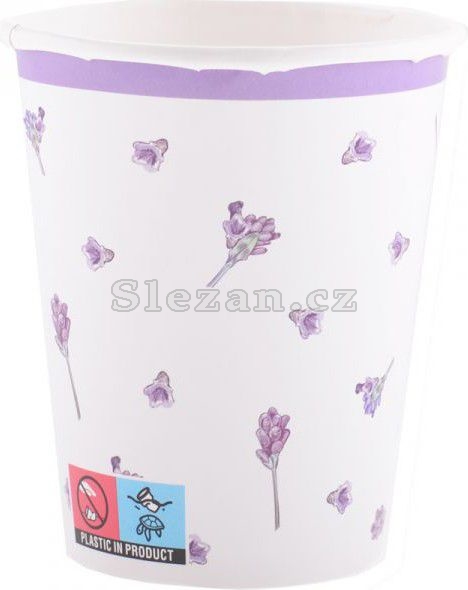 Papírový jednorázový kelímek s potiskem. Na párty, oslavy, akce. Motiv: levandule Objem: 250ml Balení: 8ks Cena je uvedena za balení.