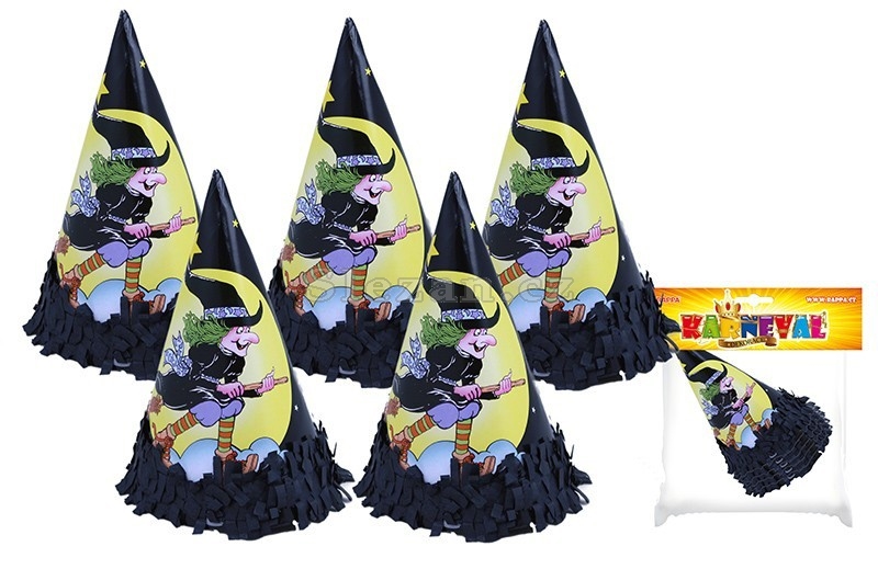sada papírových klobouků ve tvaru kužele s motivem čarodějnice