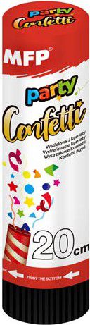 Konfety vystřelovací s pružinou na párty - metalové (20 cm) - jsou oblíbenou zábavou na každé párty a významné události - svatba, narozeniny aj. NÁVOD K POUŽITÍ: Nestřílet proti osobám ani zvířatům. Používat mohou výhradně dospělé osoby. Určené pro interiéry i exteriéry. Nepoužívat blízko elektrických vedení. Ve vlhkém prostředí mohou konfety zanechávat barevné znečištění. Nejedná se o hračku! 1. Uchopte tubu levou rukou nad šipkami a pravou pod šipkami. 2. Otáčejte proti sobě ve směru šipek, než zazní výstřel a vyletí konfety. VAROVÁNÍ: Uchovávejte mimo dosah dětí. Chraňte před teplem/jiskrami/otevřeným plamenem/horkými povrchy. Zákaz kouření. Obsahuje plyn pod tlakem, při zahřívání může vybuchnout. Chraňte před slunečním zářením. Skladujte na dobře větraném místě. Zabraňte uvolnění do životního prostředí. Odstraňte obal v zařízení schváleném pro likvidaci obalů. Uvedená cena je za 1 ks.