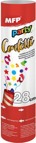 Konfety vystřelovací s pružinou na párty - papírové (28 cm) - jsou oblíbenou zábavou na každé párty a významné události - svatba, narozeniny aj. NÁVOD K POUŽITÍ: Nestřílet proti osobám ani zvířatům. Používat mohou výhradně dospělé osoby. Určené pro interiéry i exteriéry. Nepoužívat blízko elektrických vedení. Ve vlhkém prostředí mohou konfety zanechávat barevné znečištění. Nejedná se o hračku! 1. Uchopte tubu levou rukou nad šipkami a pravou pod šipkami. 2. Otáčejte proti sobě ve směru šipek, než zazní výstřel a vyletí konfety. VAROVÁNÍ: Uchovávejte mimo dosah dětí. Chraňte před teplem/jiskrami/otevřeným plamenem/horkými povrchy. Zákaz kouření. Obsahuje plyn pod tlakem, při zahřívání může vybuchnout. Chraňte před slunečním zářením. Skladujte na dobře větraném místě. Zabraňte uvolnění do životního prostředí. Odstraňte obal v zařízení schváleném pro likvidaci obalů. Uvedená cena je za 1 ks.