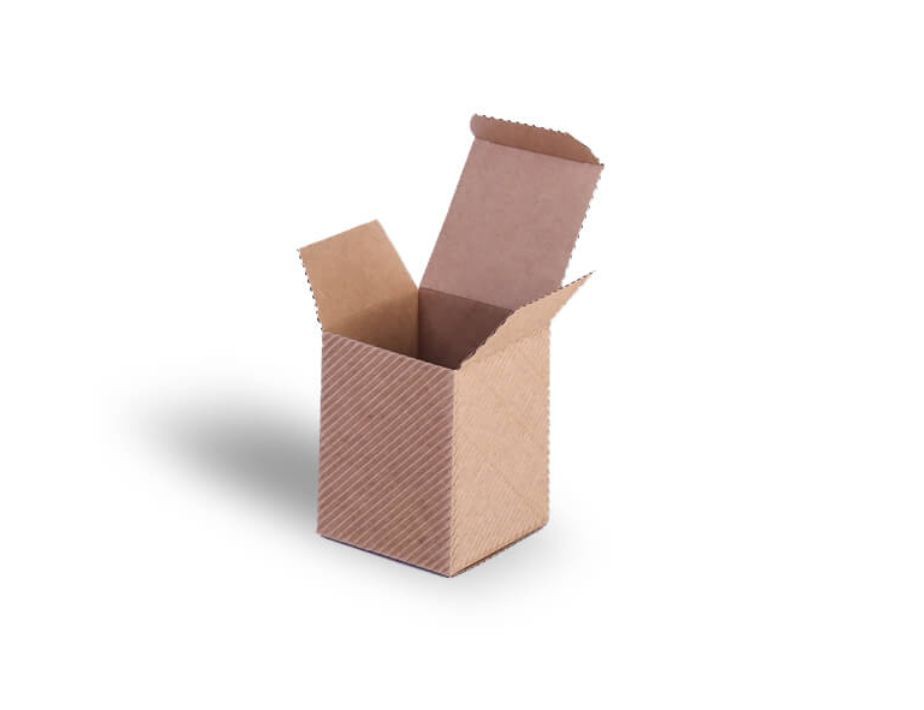 Krabička jednodílná z dvouvrstvé vlnité lepenky.
