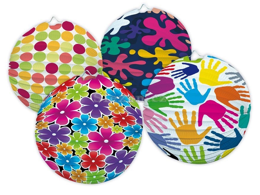 Papírový kulatý lampión - barevný s obrázky - vhodná dekorace na party, lampiónový průvod, zahradní slavnost, karneval, oslavu narozenin nebo jen tak na zavěšení do dětského pokojíčku. Vyberte si svůj lampion a udělejte z běžného večera kouzelný.