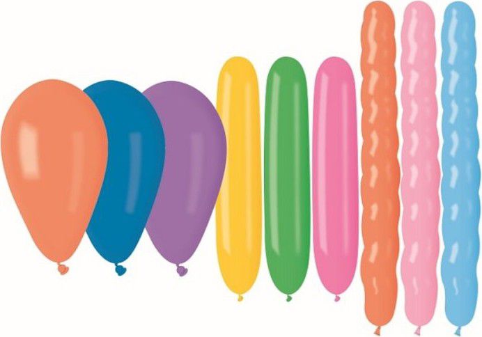 Nafukovací pastelové balónky různých tvarů a velikostí