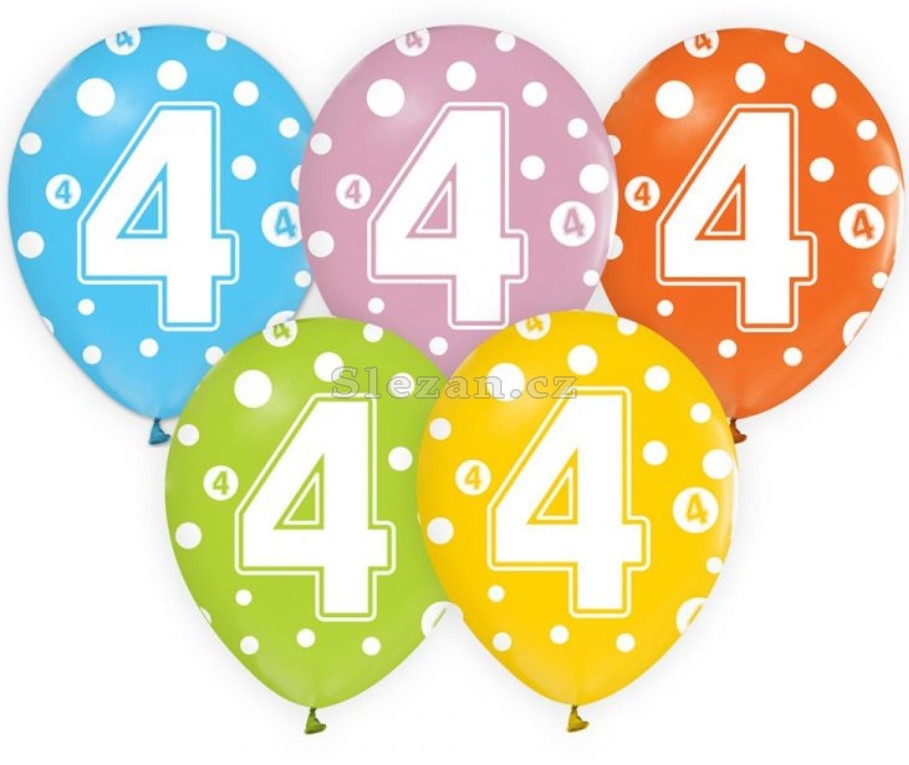 Popis Nafukovací balónky 5ks s potiskem číslice 4