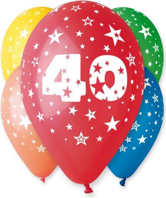 Nafukovací balónky 5ks s potiskem číslice 40, hvězdy