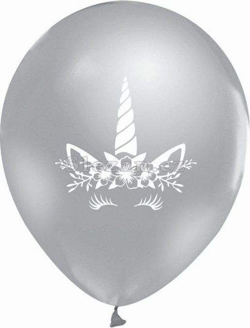 Nafukovací balónky s motivem jednorožce v bílé a stříbrné barvě.