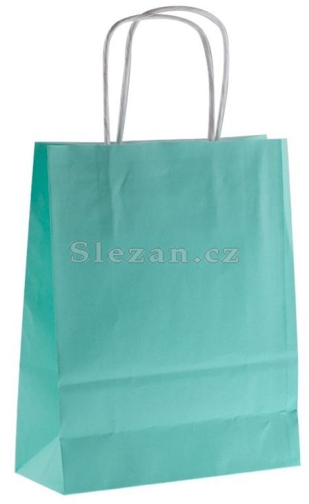 Pastelově zelená papírová taška (uvnitř bílá) je vyrobena z papíru 100g/m2