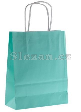 Pastelově zelená papírová taška (uvnitř bílá) je vyrobena z papíru 100g/m2.
