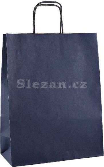 Tmavě modrá papírová taška je vyrobena z rýhovaného papíru 100g/m2. Má zpevněná kroucená ucha (twister) a je vhodná k potisku sítotiskem. Rozměr: 25x32x11cm Cena je uvedena za 1ks.