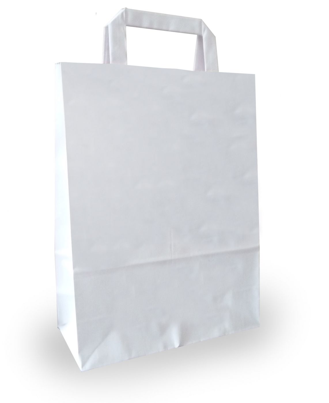 Papírová taška bílá s plochým uchem.