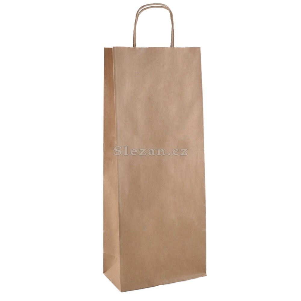 Hnědá papírová taška na láhev je vyrobena z vroubkovaného papíru 100g/m2.