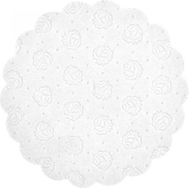 Papírové rozetky pod hrnek 9 cm Barva: bílá S vyraženým vzorem - růže Baleno po 20 ks Cena je uvedena za 1 ks