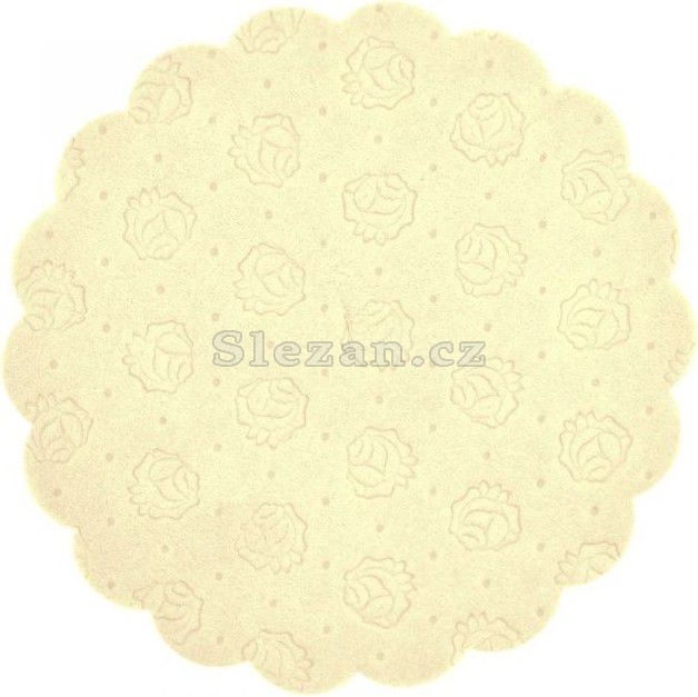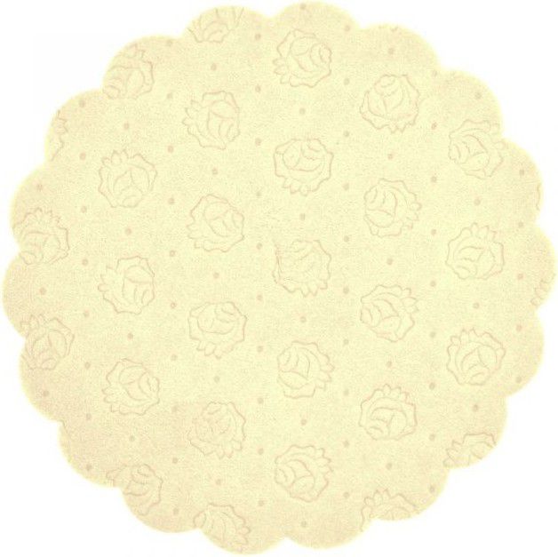 Papírové rozetky pod hrnek 9 cm Barva: krémová S vyraženým vzorem - Růže Baleno po 20 ks Cena je uvedena za 1 ks
