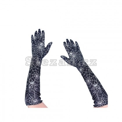 Úchvatné černé rukavice s motivy stříbrných pavučin a pavouků jsou perfektním doplňkem pro všechny čarodějnice.