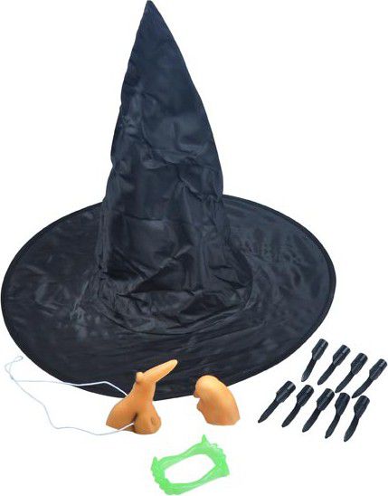 Čarodějnický set černý klobouk o průměru 39 cm, nos, brada, zuby a nehty. Tento set využijete jako kostým čaroděje či čarodějnice. Pokud se chystáte na párty, pálení čarodějnic, nebo halloweenskou oslavu tento set Vám nesmí chybět .Vyberte si z naší nabídky ještě čarodějnický plášť a Váš kostým bude kompletní. BALENÍ OBSAHUJE: - klobouk - průměr 39 cm - nos - bradu - nehty - zuby Dodáváme v sáčku se závěsem. Uvedená cena je za 1 balení.