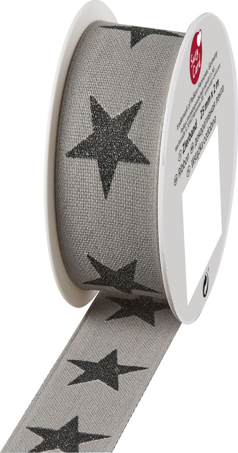 Stuha textilní 2mx25mm, stříbrná s hvězdami