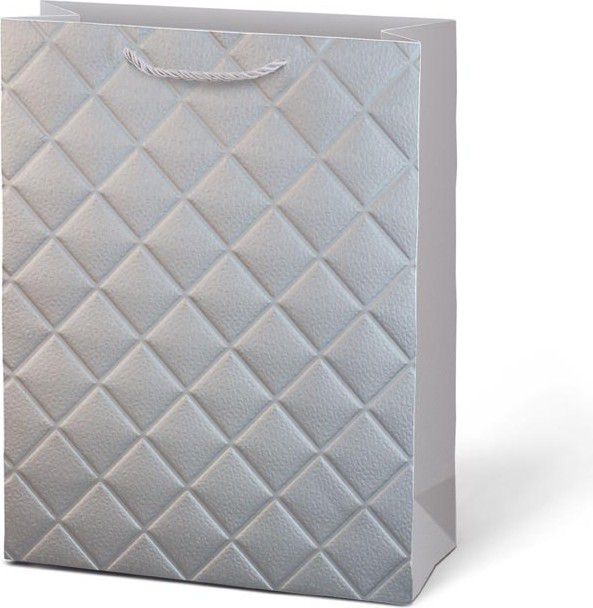 - Povrch tašky má jemný reliéfní vzor ve tvaru kosočtverců, který působí decentně a dodává dárku reprezentativní vzhled.