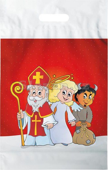 Taška s motivem Mikuláše vyrobená z PVC s průhmatem, která je ideální na zabalení dobrot, sladkostí a na další mikulášskou nadílku pro děti.