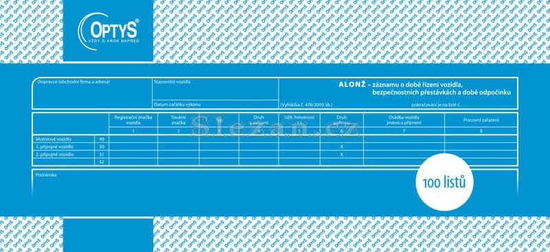 obsahuje 100 listů odtržitelných perforací, se zakládacím děrováním