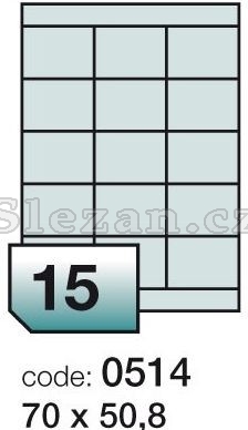 Etikety jsou vyrobeny ze samolepicího bílého papíru, který má svrchní bílý bezdřevý papír gramáže 70g/m2 spojen permanentním akrylátovým lepidlem se spodním bílým podkladovým papírem o gramáži 74g/m2.