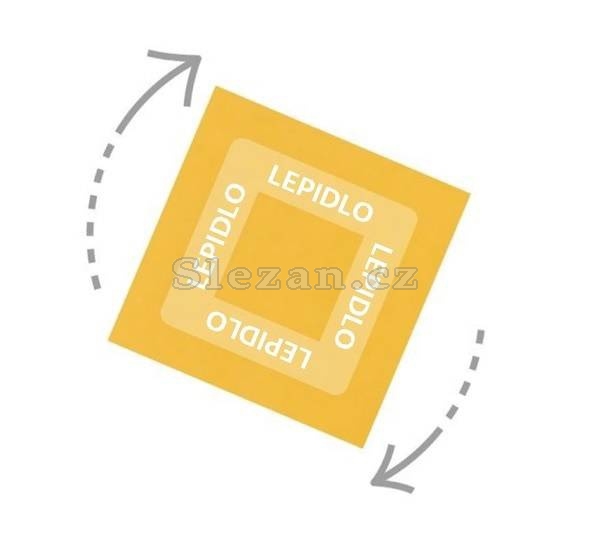 Samolepicí bloček s patentovanou technologií 360⁰, která zajišťuje perfektní přilnavost lístků ve všech směrech. Čtvercová vrstva lepidla umožňuje lepení na různé povrchy. Lístky se nekroutí, jdou snadno nalepit a odlepit, přesto skvěle drží. Nezanechávají stopy po lepidle.