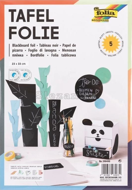- Tato samolepicí černá fólie o rozměrech 13 x 33 cm je speciálně navržena tak, aby na ni bylo možné psát křídami.