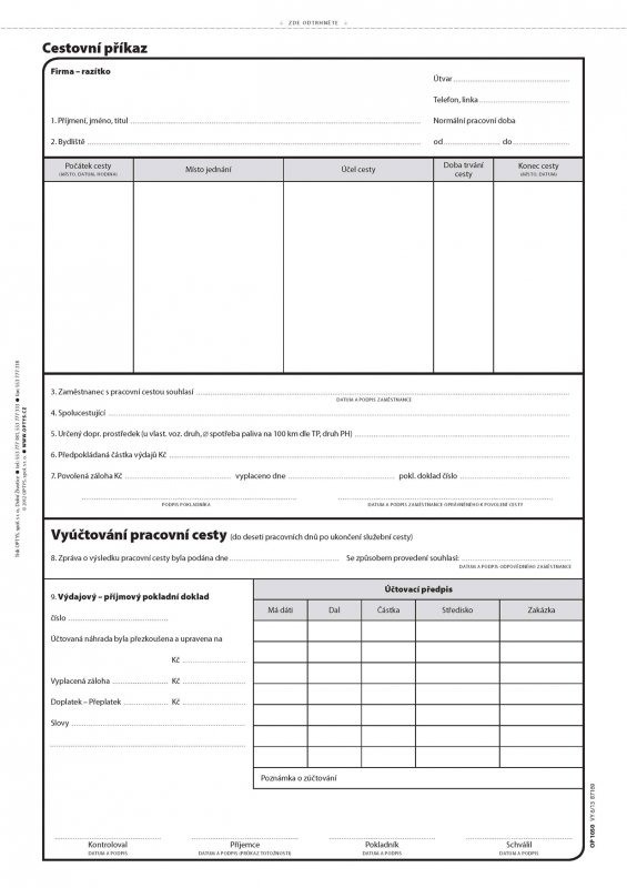 Cestovní příkaz A4, 100 listů, Optys