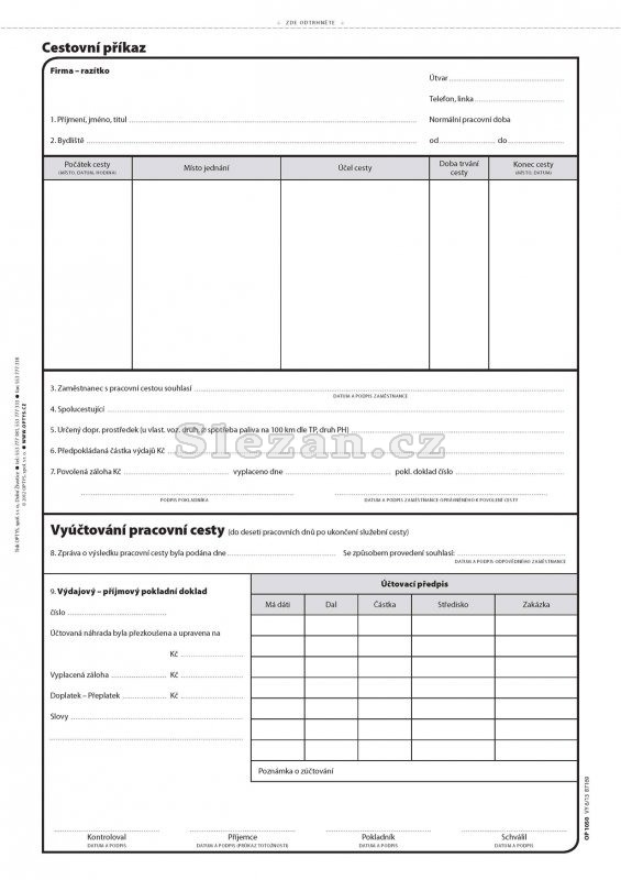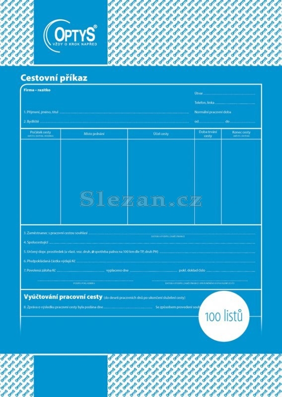 Popis Cestovní příkaz A4, 100 listů, Optys