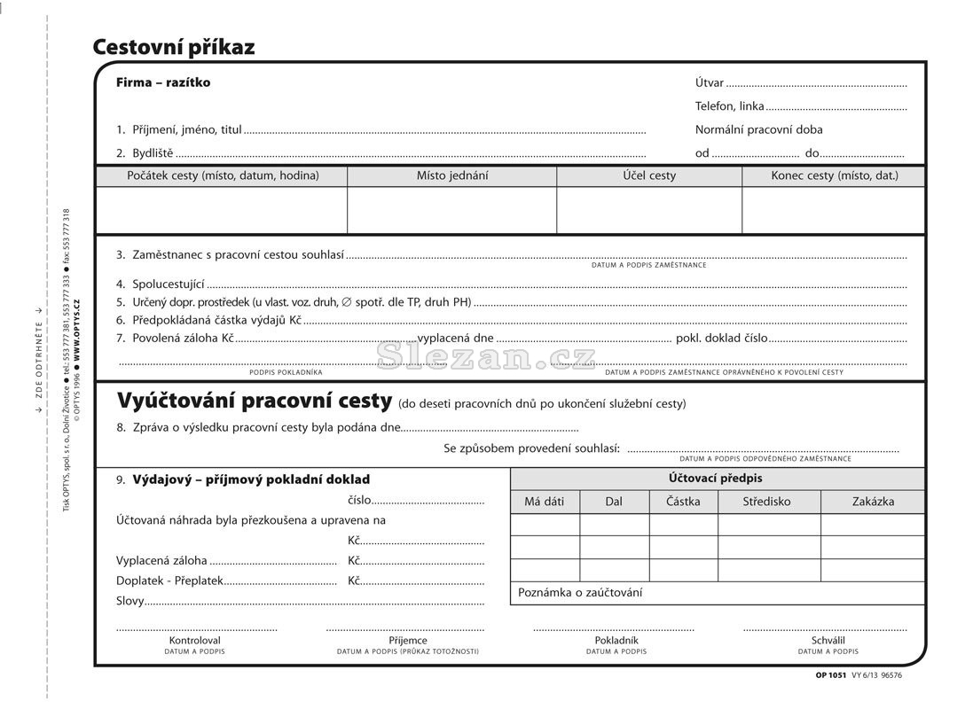Cestovní příkaz A5, 100 listů Optys 1051