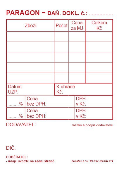Paragony, stvrzenky