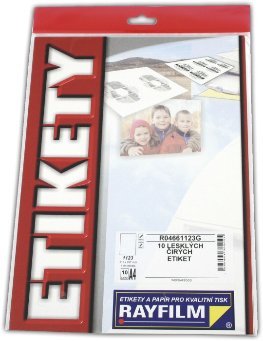 Pro čb i barevné inkoustové tiskárny. Formát A4. Čirá průhledná samolepicí polyesterová fólie. Papírový podklad, 60 + 50 g/m2. 1200 dpi. Balení 10 ks. R0466.