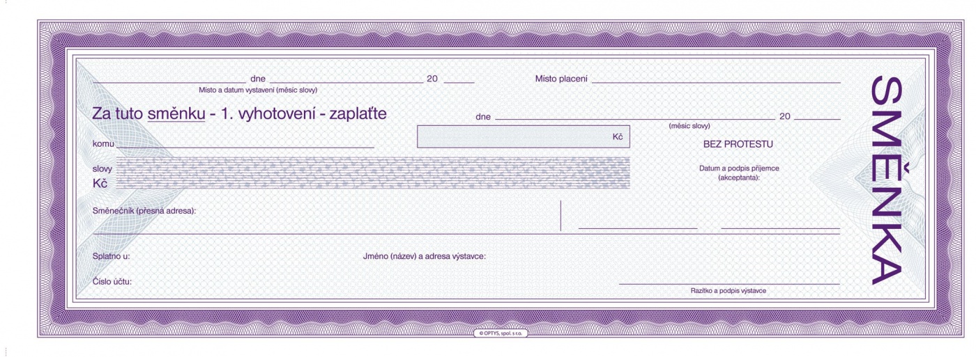 Popis Cizí směnka Zaplaťte