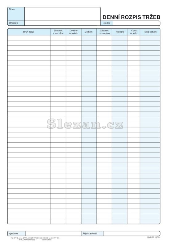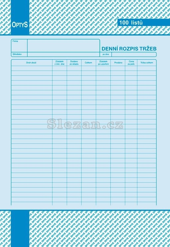 Denní rozpis tržby A4, 100 listů, Optys