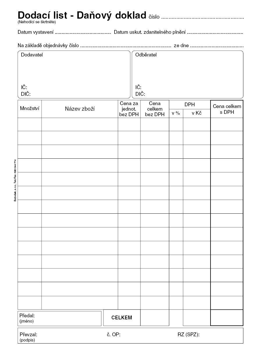 Dodací list A5-daňový doklad