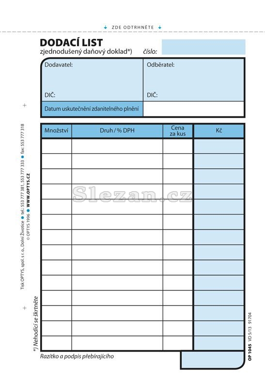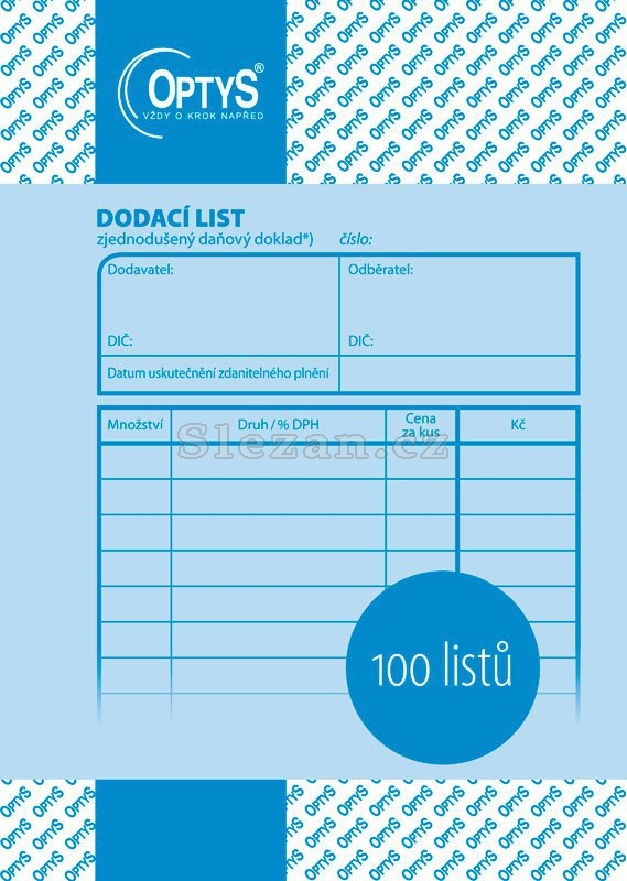 obsahuje 100 listů odtržitelných perforací, se zakládacím děrováním