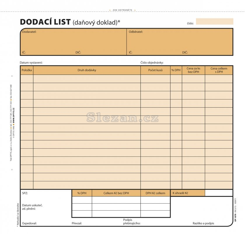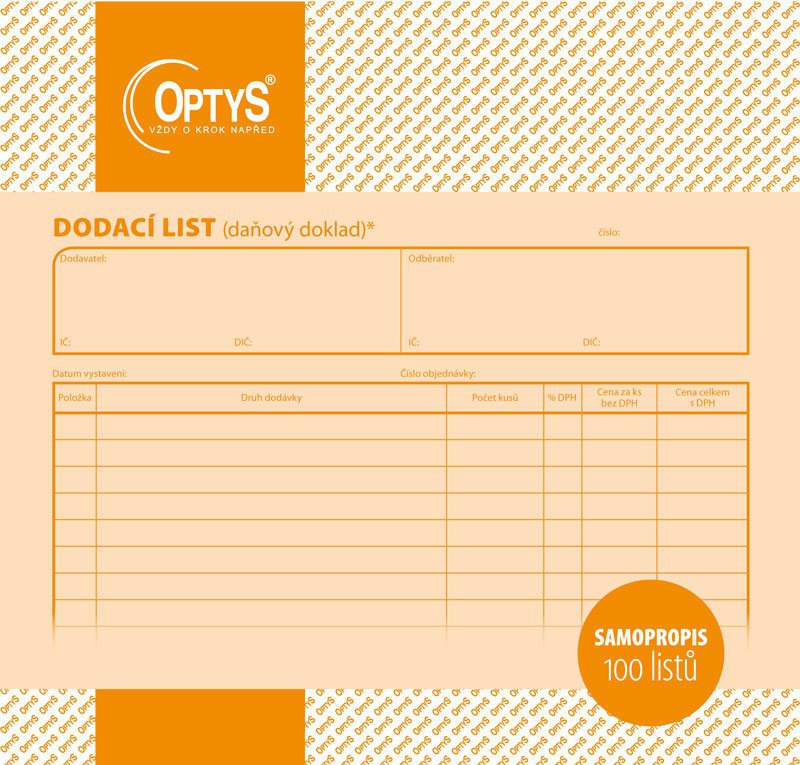 Dodací list, samopropisovací, 21 x 20 cm, 100 listů