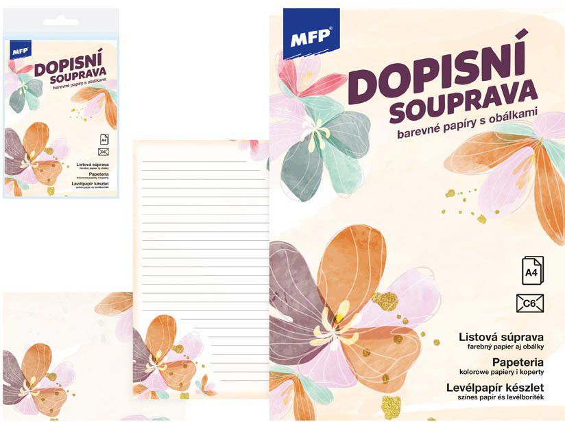 BALENÍ OBSAHUJE: - 10 potištěných dopisních papírů formátu A4 - 5 barevných poštovních obálek