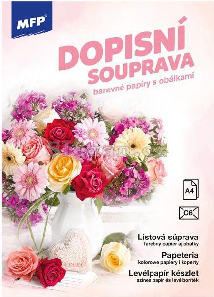BALENÍ OBSAHUJE: - 10 potištěných dopisních papírů formátu A4 - 5 barevných poštovních obálek