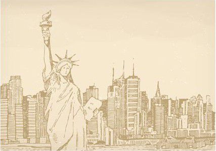 Dopisní souprava s obrázkem New Yorku a Sochy Svobody.
