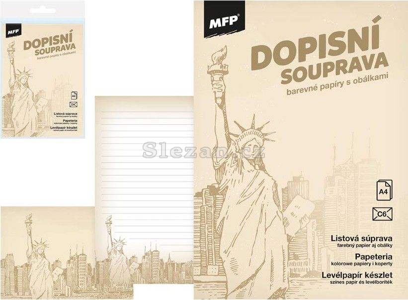 BALENÍ OBSAHUJE: - 10 potištěných dopisních papírů formátu A4 - 5 barevných poštovních obálek