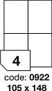 Bílé samolepící etikety z matného samolepícího papíru 70 g/m2 a papírovým podkladem 55g/m2. Formát A4. Rozměru štítku 105 x 148 mm. Balení po 100 kusech (archy). Jeden arch obsahuje 4 etikety. Použití : inkoustové tiskárny, laserové tisakárny, kopírky. Cena za balení
